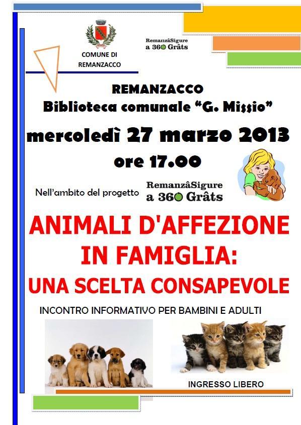 Un incontro informativo per bambini ed adulti sul cane e gli altri animali d'affezione, dalla cura alla sicurezza.