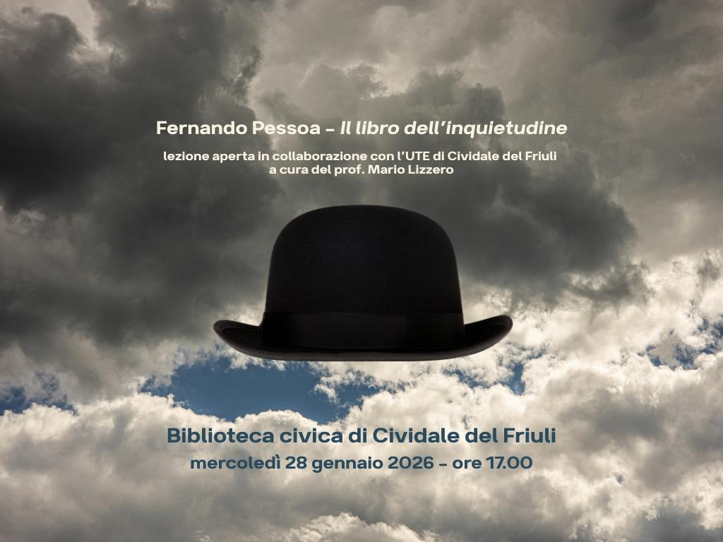 Il professor Mario Lizzero, docente presso l’Università per Tutte le Età di Cividale del Friuli, terrà una lezione aperta sul romanzo Il libro dell'inquietudine di Fernando Pessoa.