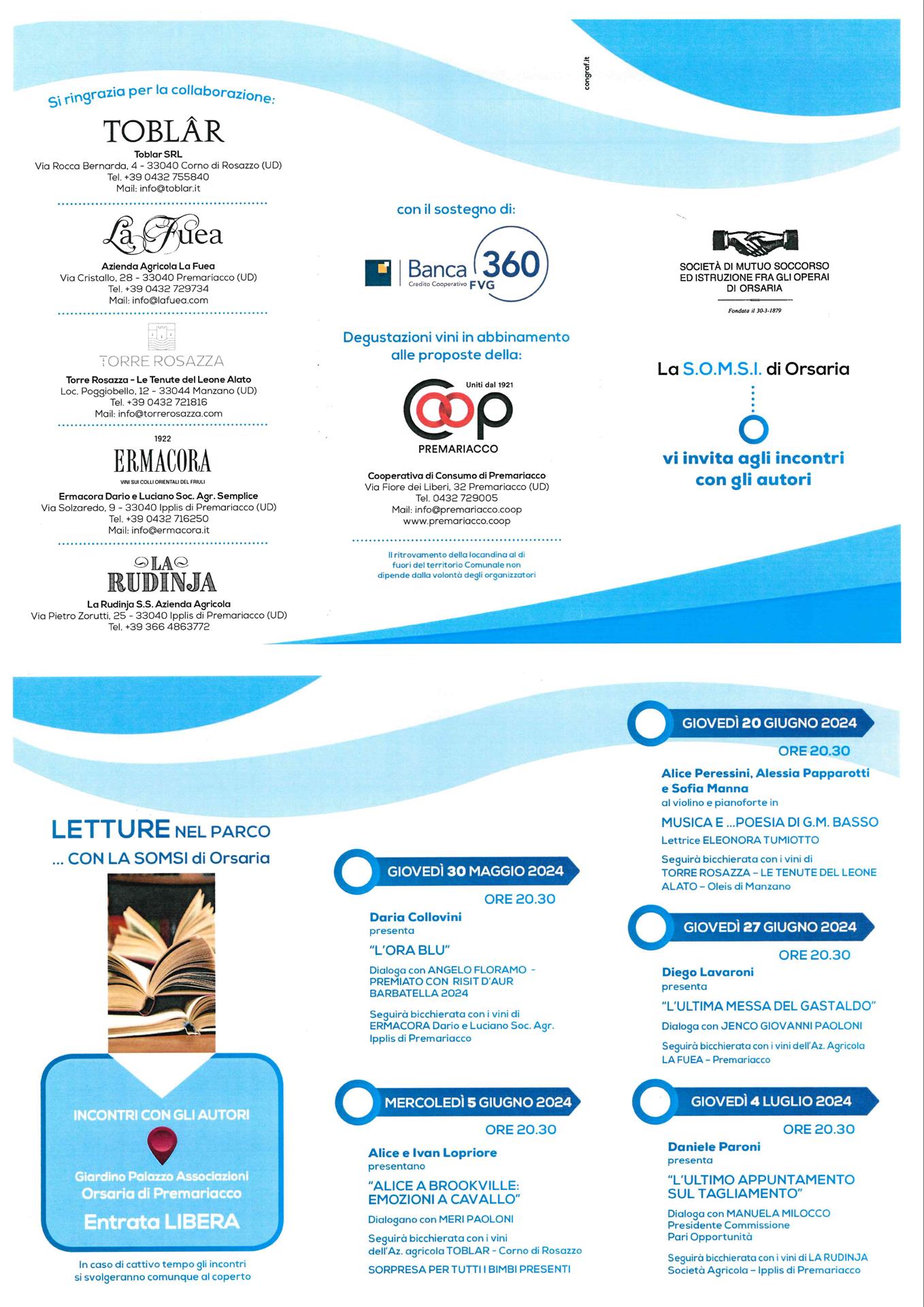 La SOMSI di Orsaria vi invita agli incontri con gli autori presso il giardino del