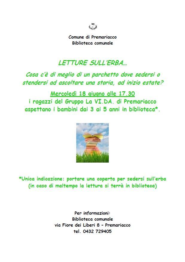 Unica indicazione: portare una coperta per sedersi sull’erba (in caso di maltempo la lettura si terrà in biblioteca).